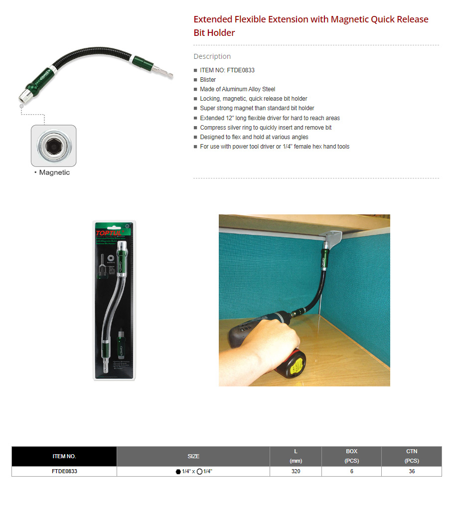 1/4"x1/4" Extended Flexible Extension with Magnetic Quick Release Bit Holder