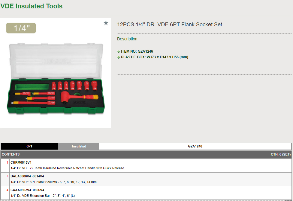 12PCS 1/4" DR. VDE 6PT Flank Socket Set