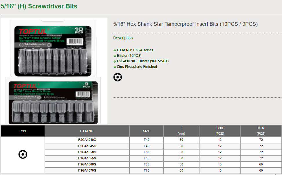 5/16" Hex Shank Star Tamperproof Insert Bits
