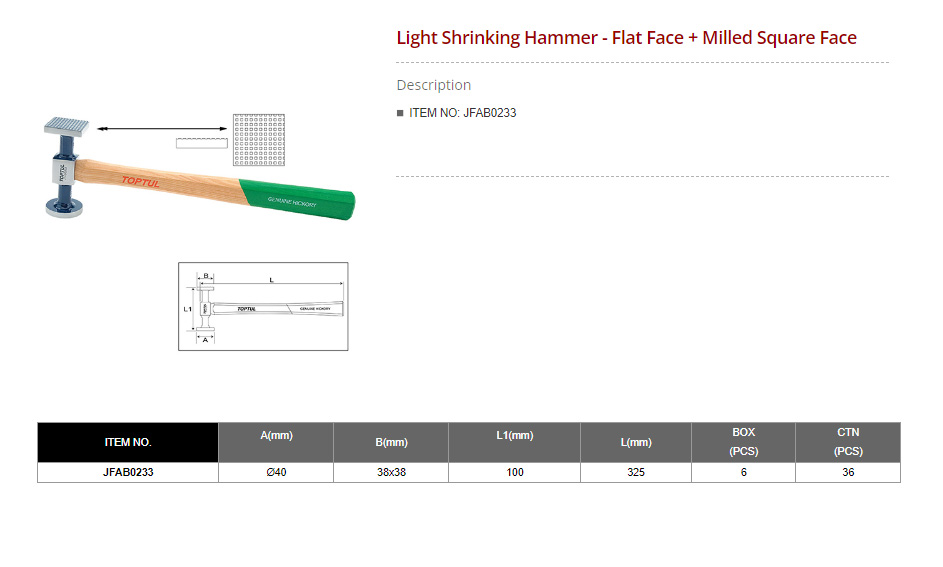 Light Shrinking Hammer - Flat Face + Milled Square Face
