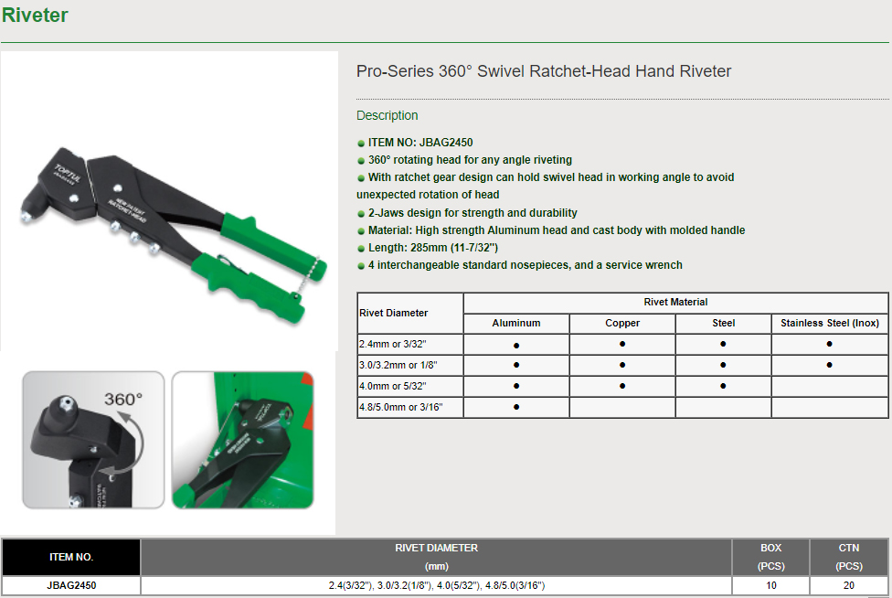 Pro-Series 360 ํ Swivel Ratchet-Head Hand Riveter