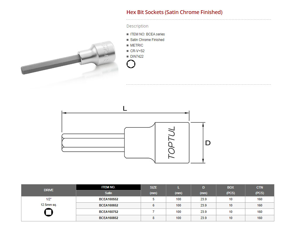 SIZE(mm) 1/2" -Hex Bit Sockets