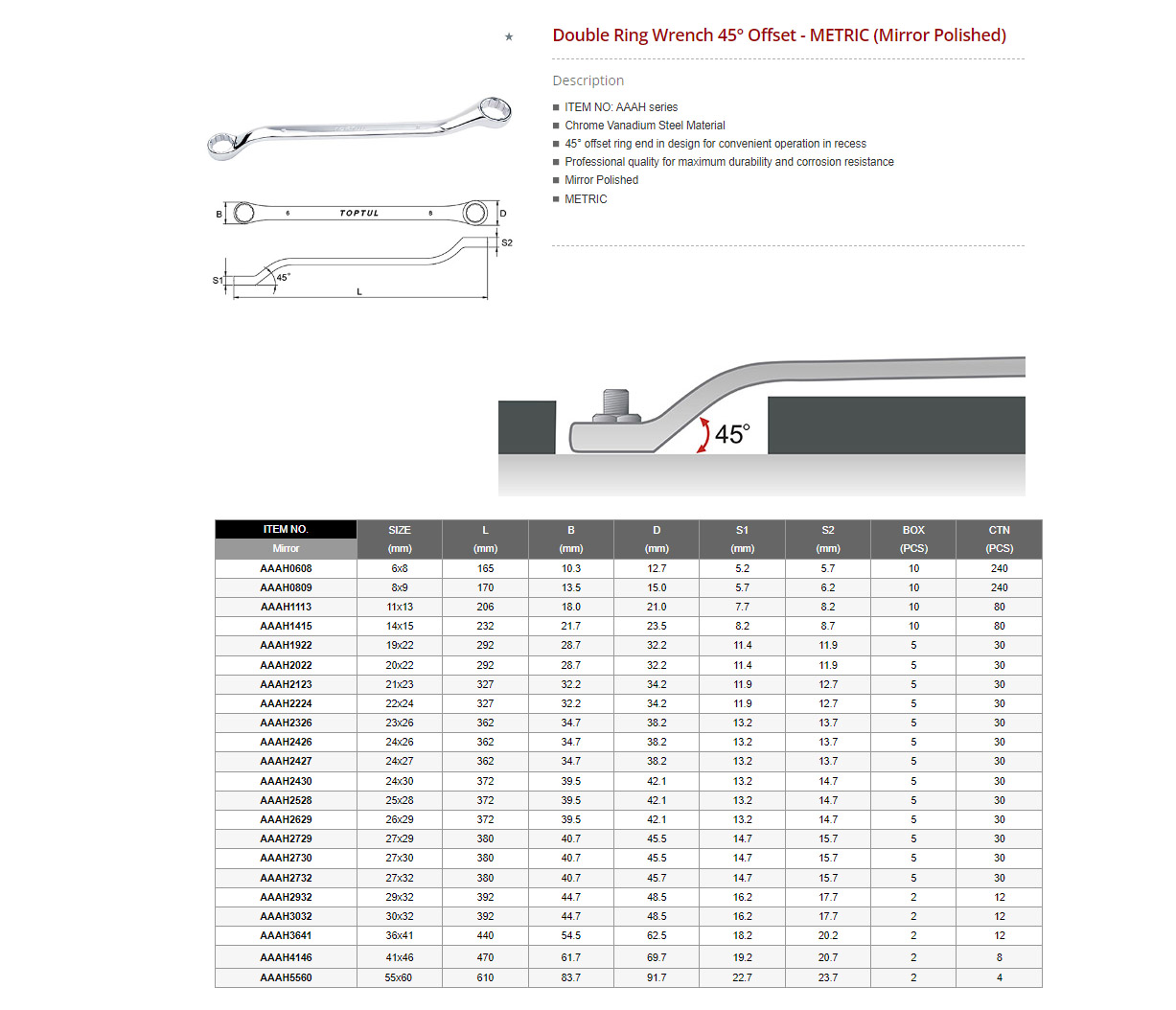 SIZE(mm) -Double Ring Wrench 45 ํ Offset