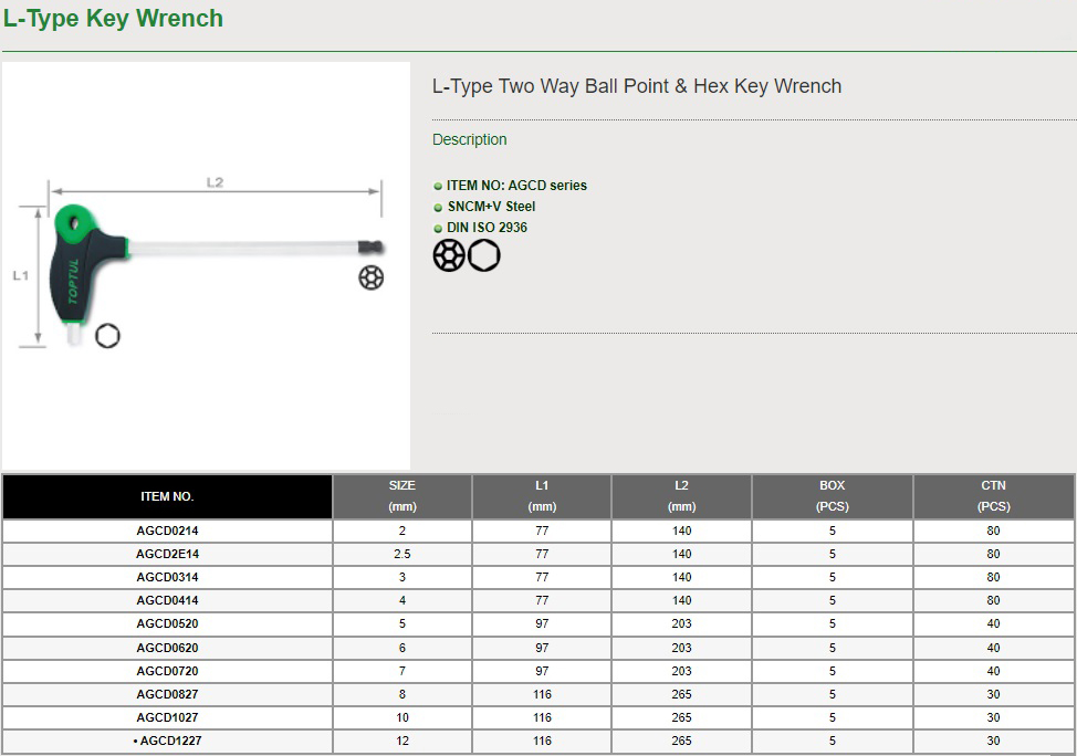 SIZE(mm) L-Type Two Way Ball Point & Hex Key Wrench