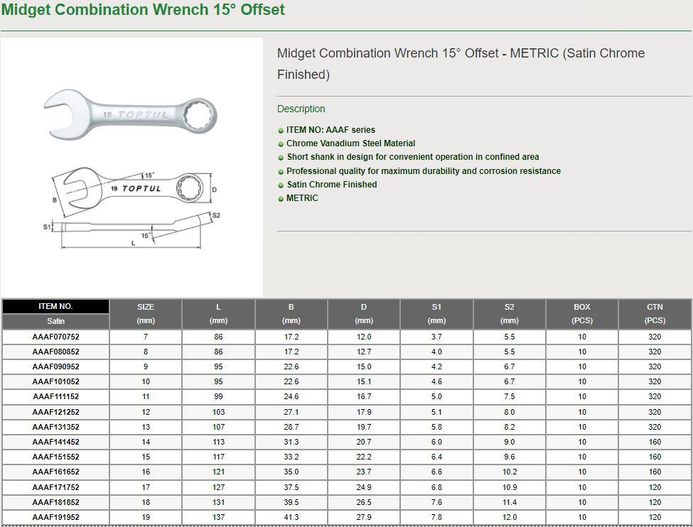 SIZE(mm) -Midget Combination Wrench 15 ํ Offset