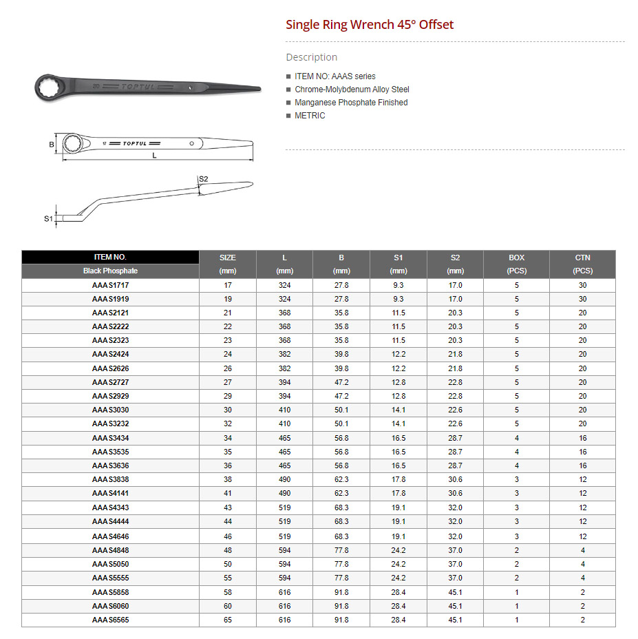 SIZE(mm) -Single Ring Wrench 45 ํ Offset