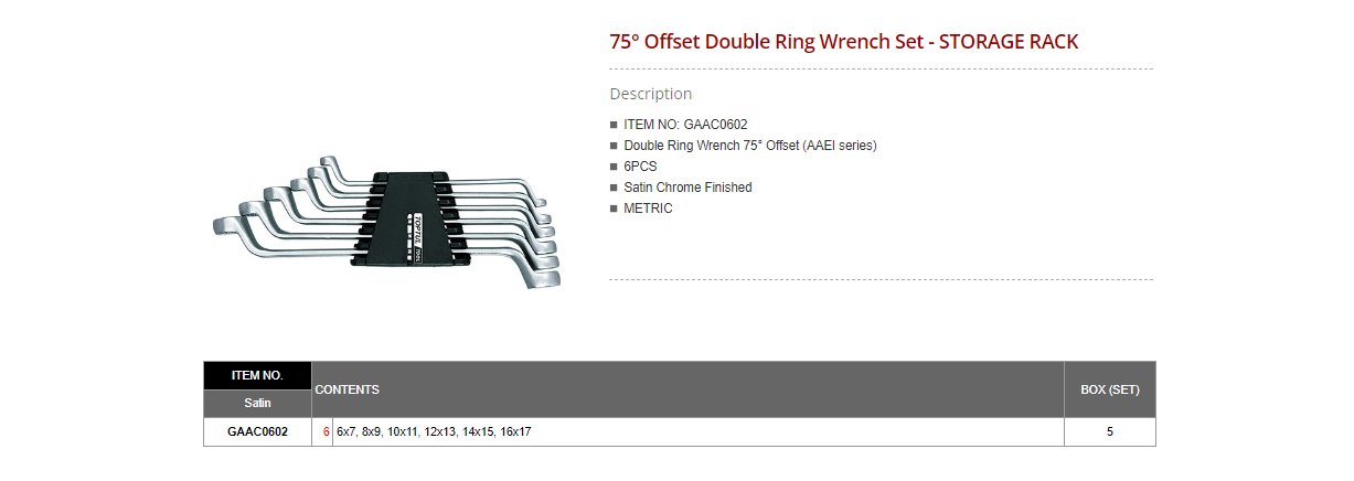 SIZE(mm) -STORAGE RACK -75 ํ Offset Double Ring Wrench Set